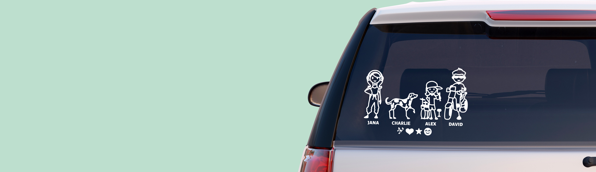 ¿Qué mejor forma de personalizar tu coche que con una pegatina de tu familia diseñada por ti? En Original People hace más de 10 años que somos expertos en hacer sonreír. Creamos pegatinas únicas para familias únicas. En solo unos clics puedes reproducir vuestros rasgos faciales, figuras, aficiones, mascotas, símbolos y el texto que más te guste. Trabajamos con las últimas tecnologías y los mejores materiales para que el resultado te saque una sonrisa cada vez que lo veas… y a todos los que pasen por tu lado.